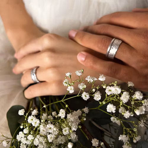 Ringen kan även skapas i sterlingsilver 925 med rhodium som är ett mjukare material och prisvänligare alternativ. Ringen kommer nötas och få en fin patina, då materialet är mjukare. Ringen förändras över åren, precis som vi gör i livet.